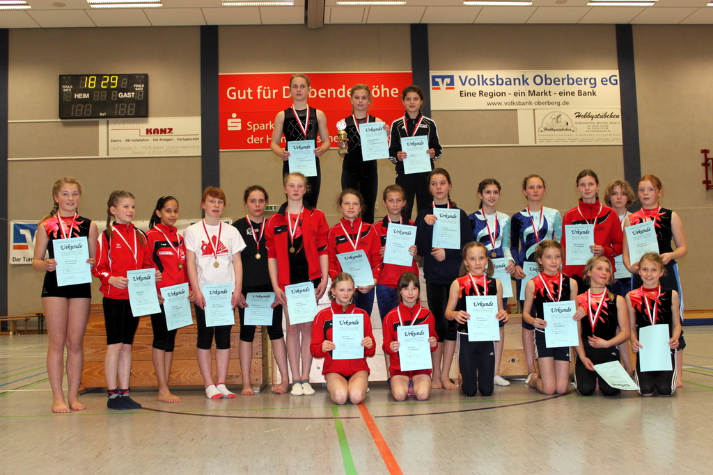 Am 17. und 18.03. fanden in der Drabenderhöher Sporthalle die diesjährigen Verbandseinzelmeisterschaften Qualifikation und Aufbauklasse, Gerätturnen weiblich, P-Stufen Variante A statt Die Turnabteilung des BV09 Drabenderhöhe freute sich, als Gastgeber und Ausrichter der Wettkämpfe die Turnerinnen vom TSV Much, TV Rodt-Müllenbach, SSV Nümbrecht, VfL Engelskirchen, TuS Elsenroth, TV Hülsenbusch und TuS Wiehl zu begrüßen.