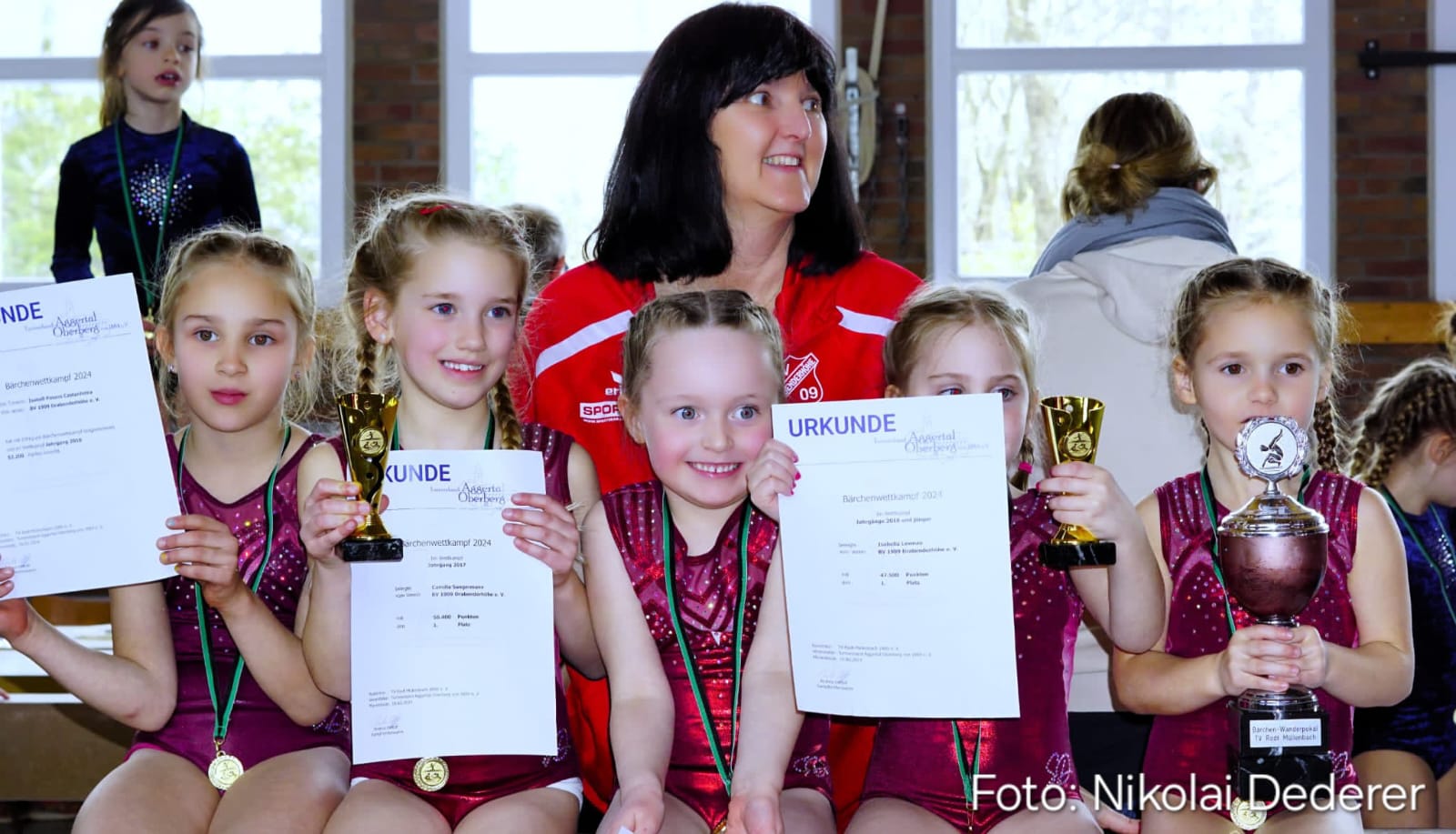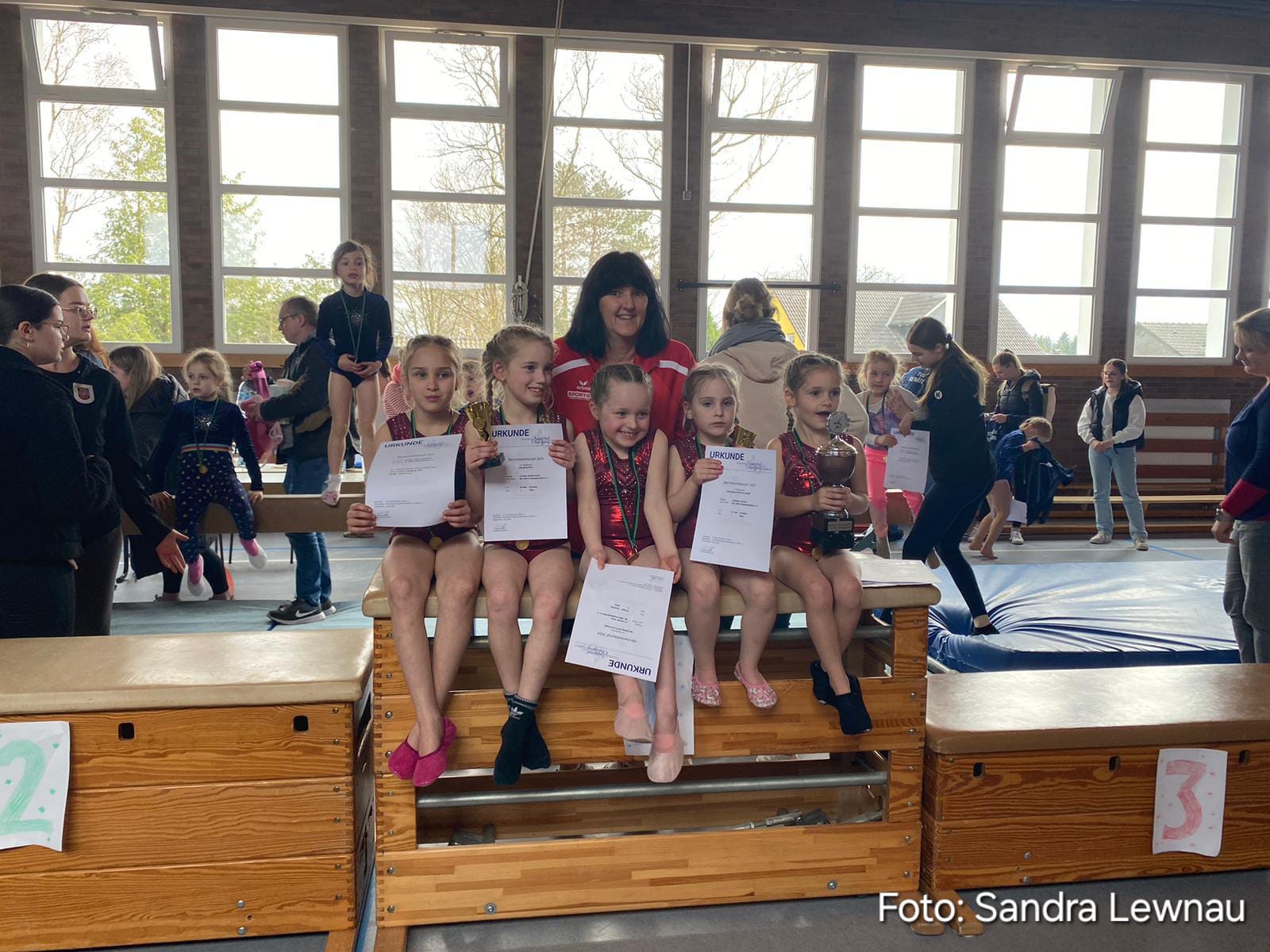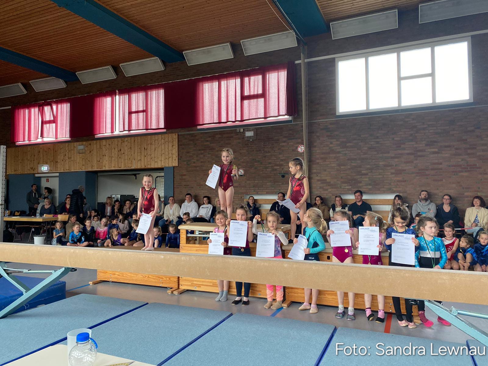 Die kleinen Turnerinnen belegen beim Bärchenwettkampf den ersten Platz in der Gesamtwertung