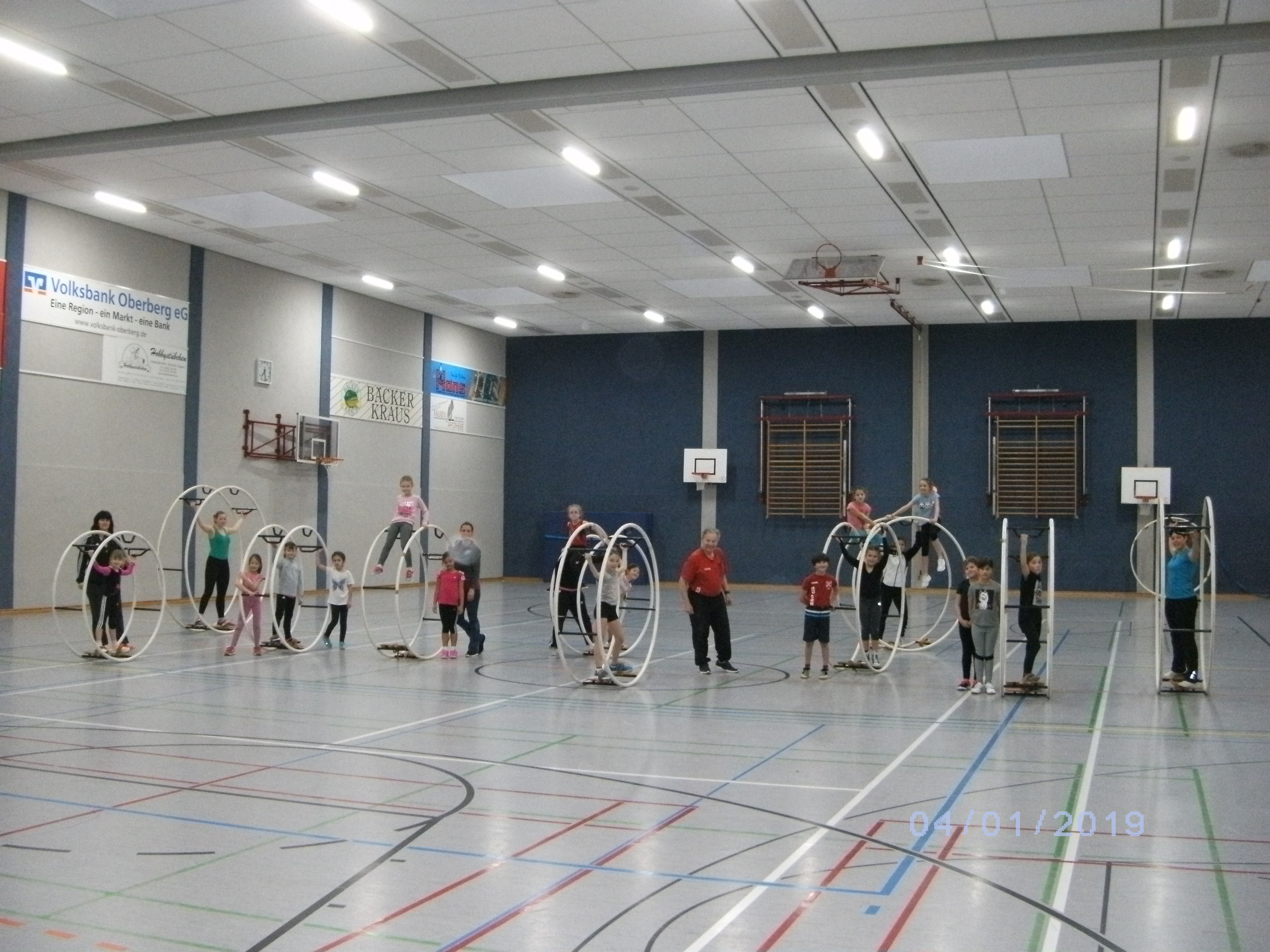 Rhönradturnen für Anfänger am 03.01.19, so lautete die Ausschreibung eines Ferienangebotes der Turnabteilung im BV 1909. Aber das war nur der erste Teil. Tags drauf gab es dann ein Angebot für Fortgeschrittene. Das Konzept war neu. In den letzten Jahren setzten wir die Rhönräder in erster Linie als Highlight bei den Turncamps für die Wettkampfkinder ein. Nun hatten Martina Friedemann und Jürgen Bransch-Böhm den Wunsch ein Trainingslager mit Zielerfüllung anzubieten. Am Freitag, den 04.01.19 waren dann die Fortgeschrittenen an der Reihe. Kinder aus dem 1. Kurs durften nur in den 2. wenn sie ein gewisses Grundkönnen vorzeigen konnten. Ja, die Kinder mussten Vorturnen. Da war ich (Jürgen Brandsch-Böhm) streng, denn am Freitag war eine andere Zielsetzung angesagt. Da war es notwendig, dass jeder sicher und selbstständig (also ohne Sicherheitsbegleitung) im Rad rollen kann.
